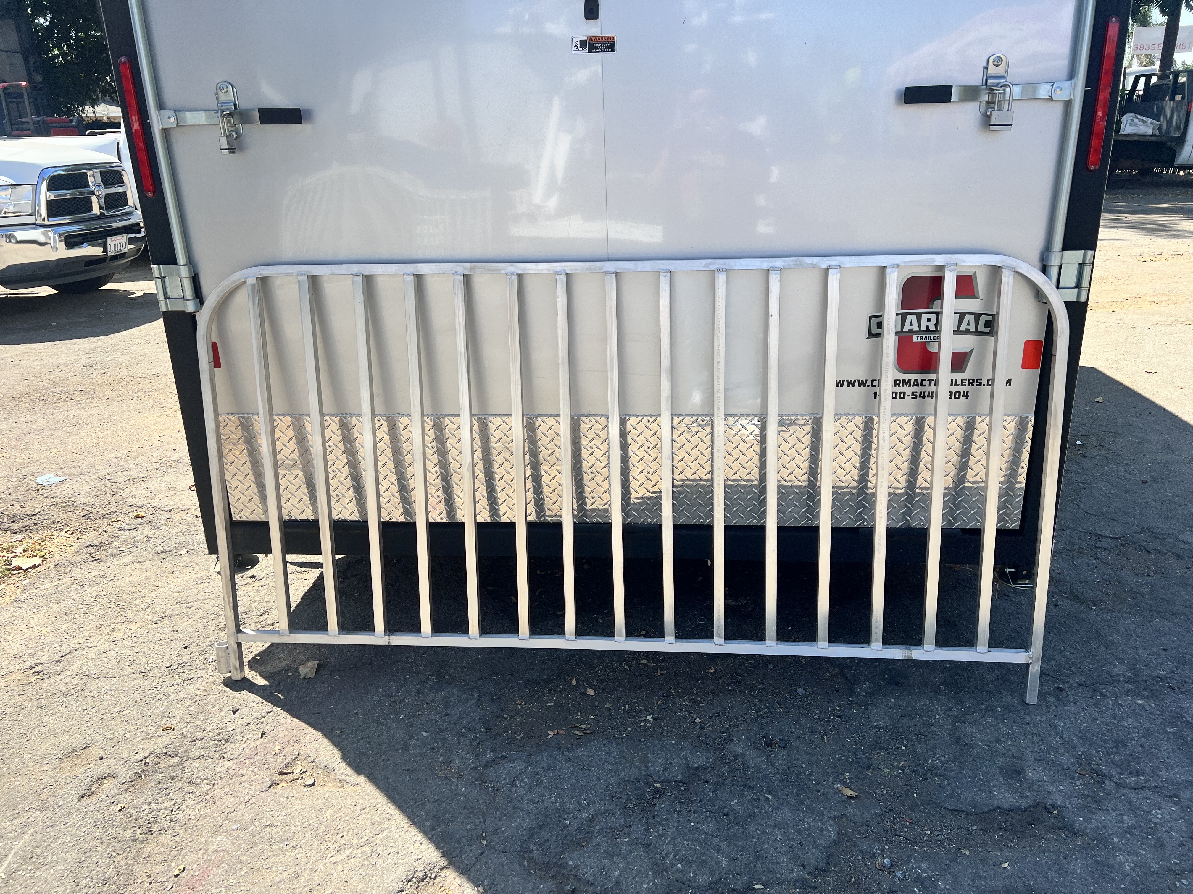 We also fabicrate fencing for the rides. The fencing is made with heavy duty aluminum. The fence is 83" in length and 43" in height. It is made of pieces of 1" by 1" with 1/8" thick. Each piece of fence weights about 30lbs. The pieces can connect one to another.